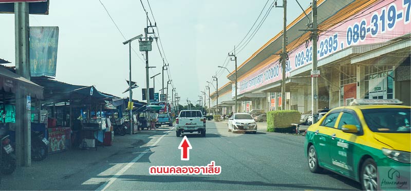 เลี้ยวซ้ายมาเข้าถนนคลองอาเสี่ยตรงไปอีกประมาณ 950 ม. จะเจอพื้นที่โครงการทางซ้ายมือ ขวามือตรงนี้เป็นโซนขายอาหารมีหลายร้านเลย