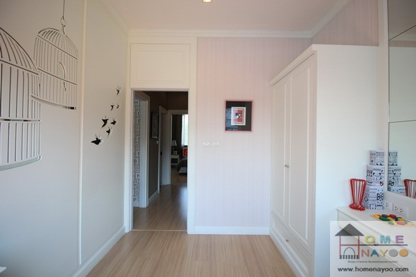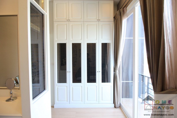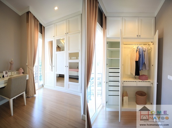 บิวท์อินเป็นตู้เสื้อผ้าให้ดูไปแนวทางคะ >> โดยตู้เสื้อผ้า ขนาด 1.30 เมตร ความสูงถึงเพดานเลยคะ