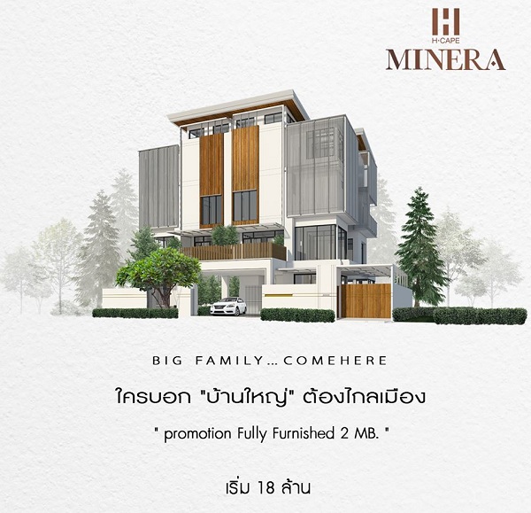 | จุดเด่นของโครงการ | H-Cape Minera รามอินทรา “ใครบอก บ้านใหญ่ ต้องไกลเมือง” บ้านหรูสไตล์โมเดิร์น ที่พร้อมให้คุณได้เติมเต็มสุนทรียภาพแห่งการใช้ชีวิตได้ทุกที่ ทุกเวลา เปลี่ยนบ้านเดิมๆ ให้กลายเป็นบ้านที่แตกต่าง และบ้านจะพิเศษกว่าเดิม ในแบบของคุณ |