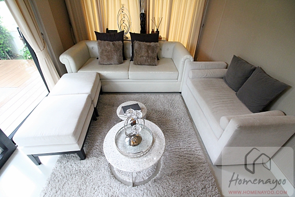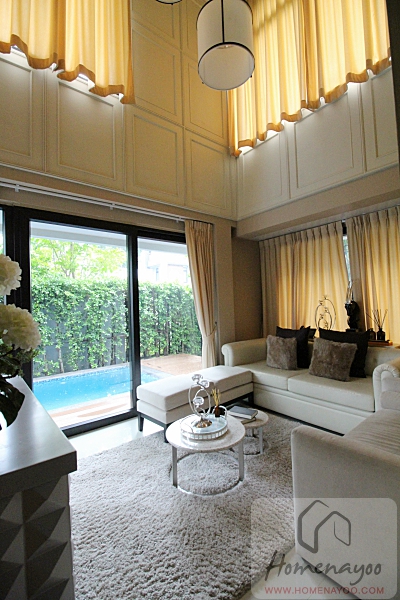 1 ห้องนั่งเล่น, 1 ห้องครอบครัว, 1 ห้องครัว, 1 ห้องแม่บ้าน, ที่จอดรถ 2 คันโดดเด่นด้วยสระว่ายน้ำในตัวบ้านพร้อมลานพักผ่อน พื้นที่ห้องนั่งเล่นและห้องรับประทานอาหารเป็นห้องเพดานสูง 5.5 ม. ควบคุมบ้านด้วยระบบ Home Automation ทั้งหลัง ในราคาเริ่มต้นที่ 19 ล้านบาท