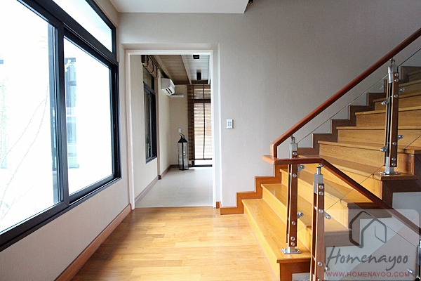 ขึ้นมาชั้น 2 จะเป็นโถงบันได พร้อมหน้าต่างบานเลื่อน 1 ชุด พื้นชั้น 2, 3, 4 จะเป็นพื้นไม้สักเกรด AAA ซึ่งเป็นเกรดพรีเมียม
