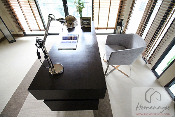 ห้องนี้เป็นห้องอเนกประสงค์ที่สามารถเปิดออกไป Green Terrace ได้ สามารถปรับการใช้งานได้หลายรูปแบบนะคะ บ้านตัวอย่างจัดเป็นห้องทำงานมาให้ดูเป็นไอเดีย สามารถวางโต๊ะประชุมสำหรับ 6 ที่นั่งเพิ่มได้แบบกำลังดี