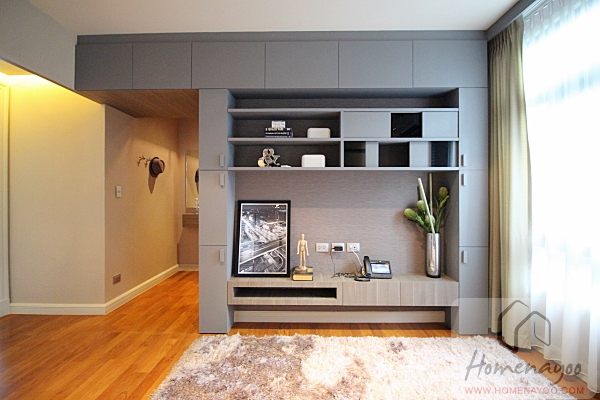ส่วนชั้นวางของ Built in มาให้สูงจรดเพดาน ช่วยเพิ่มพื้นที่ใช้สอยได้ดี