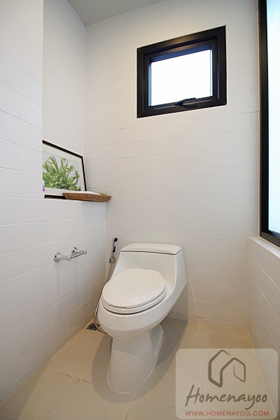 ห้องโถสุขภัณฑ์มีฉากกั้นห้องเป็นกระจกเทมเปอร์มาให้ และมีหน้าบานฟิกซ์และบานกระทุ้งมาให้เปิดระบายอากาศได้