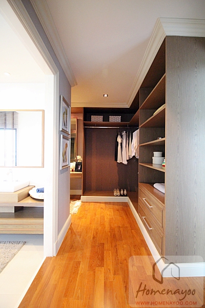 ถัดจากชั้นวางทีวีจะเป็นทางเดินไปส่วน Walk in closet และ ห้องน้ำ เราเข้าไปดูกันต่อเลยค่ะ