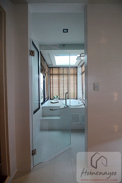 ส่วนห้องอาบน้ำพื้นลดระดับลงไปและกั้นฉากกั้นห้องเป็นกระจกเทมเปอร์มาให้