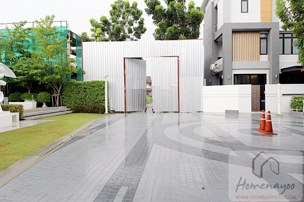 ถนนย่อยในโครงการกว้าง 9 เมตร สองฝั่งข้างทางหรือหน้าบ้านจะมีทางเดินเท้าเข้าบ้านอยู่ และปลูกต้นไม้หน้าบ้านมาเป็นระยะๆช่วยเพิ่มความร่มรื่นในซอย
