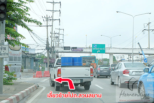 จากถนนรามอินทราพอเข้ามาถนนสวนสยามเราเลี้ยวซ้าย