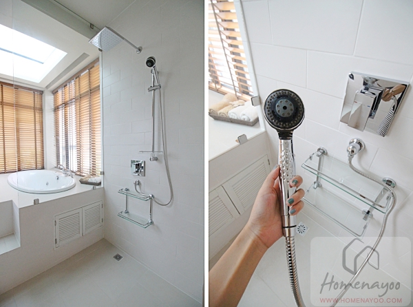 เปิดเข้ามาชั้นแรกจะเป็นส่วนอาบน้ำแบบ Shower ถัดไปจะเป็นส่วนอ่างจากุซซี่