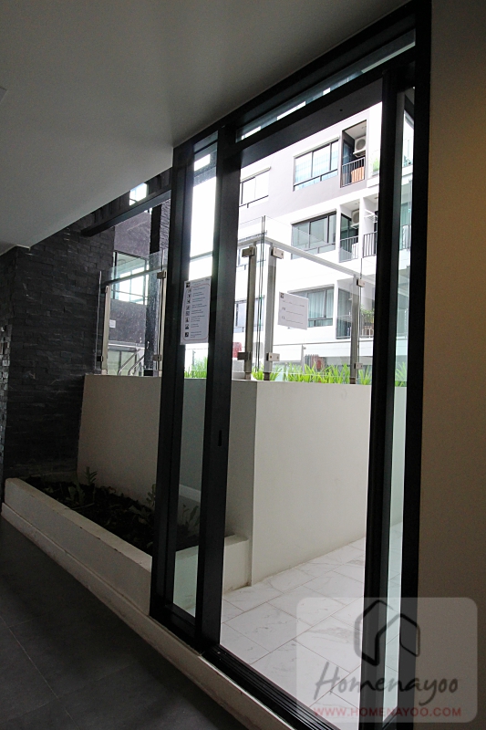 ประตูบานเปิดเข้าไปโถงลิฟต์โครงการเป็นระบบ Access Card คือต้องสแกนการ์ดผ่านเข้าไปค่ะ