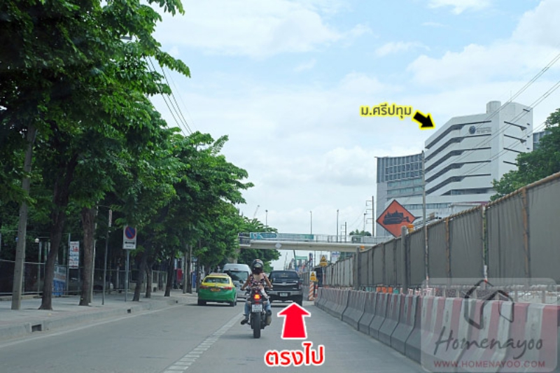 เราเริ่มเดินทางกันบนถนนพหลโยธินมุ่งหน้าไปทางแยกรามอินทราที่อยู่ติดวัดพระศรีมหาธาตุ เราจะเจอมหาวิทยาลัยศรีปทุมอยู่ทางขวามือ ตอนนี้กลางถนนพหลโยธินมีการก่อสร้างรถไฟฟ้าสายสีเขียวกันอยู่นะคะ วันนี้เราตรงไปตามทาง