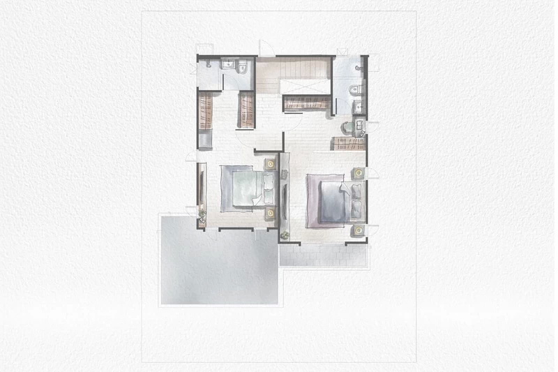 ถัดมาคือห้องนอนชั้นล่างฝั่งหน้าบ้าน ภายได้พื้นที่ใช้สอยมากว้างขวางปรับรูปแบบการใช้งานได้ตามไลฟ์สไตล์ของแต่ละบ้าน เช่น ห้องนอนผู้สูงอายุ, ห้องนอนรับรองแขก, ห้องทำงาน, ห้องออกกำลังกาย หรือห้องพักผ่อนดูหนัง เป็นต้น
