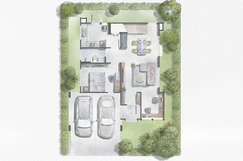 มาดูกันที่ Living Area มุมนั่งเล่นพักผ่อนของบ้านกันก่อนเลย พื้นที่มากว้างขวางจัดวางชุดโซฟาขนาดใหญ่ได้ทั้งแบบ I-Shape หรือ L-Shape พร้อมเพิ่ม Armchair, สตูล และโต๊ะกลางขนาดกะทัดรัดเข้าไปได้อีก