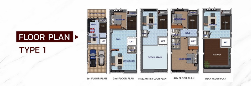 | ลักษณะโครงการ | โฮมออฟฟิศ 5 ชั้น หน้ากว้าง 5.5 เมตร |
