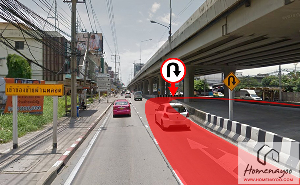 จากนั้นให้ชิดซ้ายไปปากเกร็ด เข้าสู่ถ.แจ้งวัฒนะ ไม่ต้องขึ้นสะพานข้ามแยกนะคะ เราต้องไปกลับรถใต้สะพาน