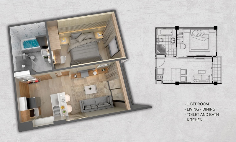 • 1 ห้องนอน : 33.00 ตร.ม.