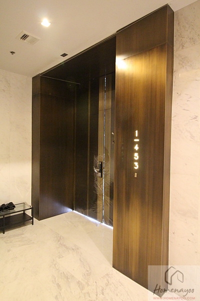 ห้อง Penthouse จะอยู่ที่ชั้น 39 นะคะซึ่งเป็นชั้นพักอาศัยชั้นบนสุดมีเพียง 3 ยูนิตเท่านั้นค่ะประตูด้านหน้าจะใหญ่กว่าห้องแบบ Duplex มีหมายเลขห้องด้านหน้าชัดเจนและมีไฟส่องออกมาจากตัวเลขห้องด้วย ประตูจะมี Digital Door Lock ของ Yale