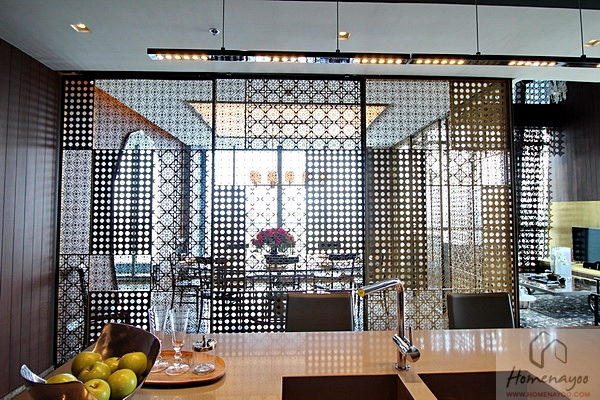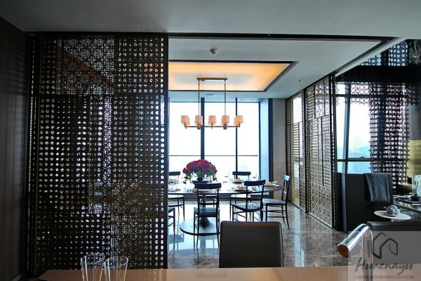 ห้องต่อไปที่พาไปชมก็ยังเป็นห้อง 2 Bedrooms Duplex แต่ตกแต่งด้วย Contemporary style ซึ่งห้องนี้พื้นที่ใหญ่ขึ้นมาทำให้มีพื้นที่ตรงห้องนั่งเล่นและห้องทานอาหารที่กว้างค่ะ ส่วนครัวก็กว้างกว่าห้องเมื่อกี้และยังมีพื้นที่อเนกประสงค์เหลือสามารถทำเป็นมุมทำงานได้