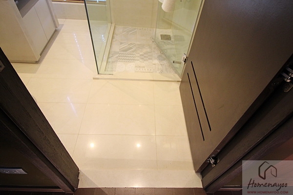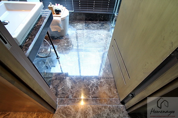จากตรงนี้พื้นจะเป็นแกรนิตโต้ค่ะ ด้านซ้ายคือห้องน้ำ ด้านขวาคือประตูทางเข้าบ้าน