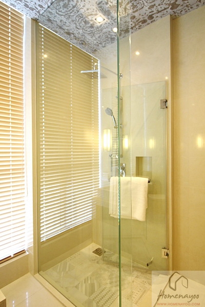 ภายในห้องน้ำนะคะ ห้องนี้จะมีทั้งส่วนที่เป็น Shower และอ่างอาบน้ำ และมีกระจกบานใหญ่เผื่อนอนแช่ในอ่างแล้วดูวิวด้านนอกพักสายตาค่ะ