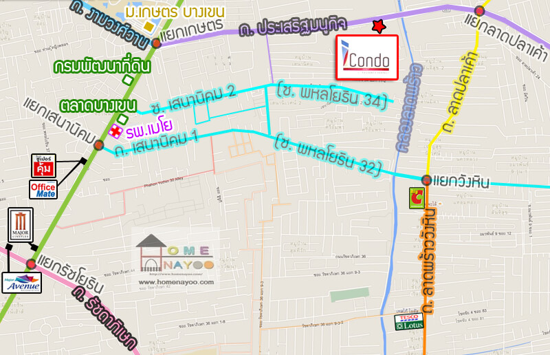 ใกล้รถไฟฟ้า BTS สถานี ม.เกษตร, เมเจอร์ รัชโยธิน, เซ็นทรัล ลาดพร้าว, Union Mall, SCB Park, รพ.เมโย, รร.หอวัง และ ม.เกษตรศาสตร์