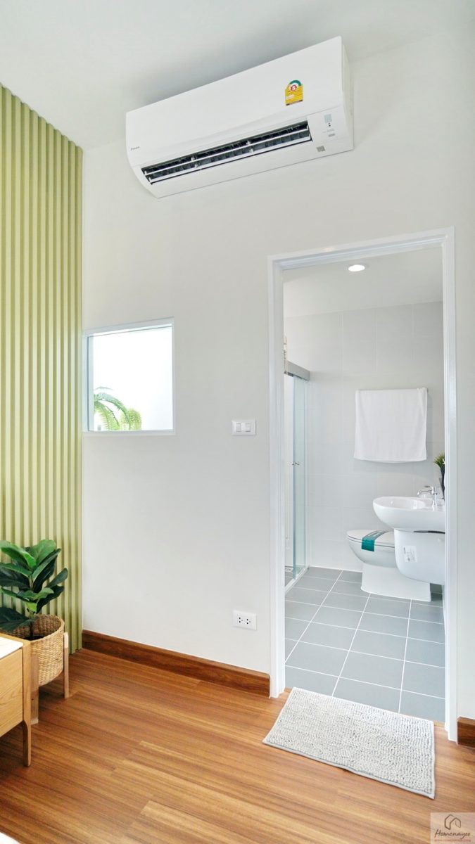 ในห้องน้ำจะมีการแบ่งส่วนแห้งและส่วนอาบน้ำออกจากกัน มีระเบียงส่วนตัวทางฝั่งหน้าบ้านและได้ชุดสุขภัณฑ์มาตรฐานของ American Standard ทั้งหมด