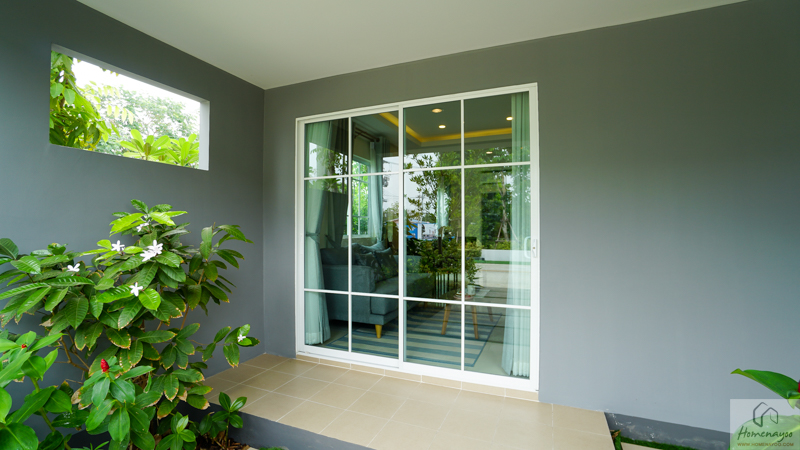 สำหรับบ้านแปลงมุมจะมีหน้าต่างกระจกบานเลื่อนติดมาให้รวม 2 บาน ส่วนบ้านแปลงกลางจะได้หน้าต่างกระจกบานเลื่อนฝั่งหน้าบ้านมา 1 บาน ใช้เปิดรับลม รับแสงธรรมชาติในตอนกลางวันได้