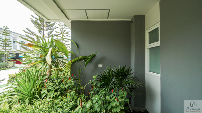 ส่วนระเบียงด้านนอกจะ สามารถจัดสวนเล็ก ๆ เพื่อสร้างบรรยากาศ Greenery ในการใช้งานได้ หรือถ้าไม่จัดเป็นสวน ก็อาจจะใช้เป็นพื้นที่วางราวตากผ้าเช็ดตัวหรือพื้นที่เก็บอุปกรณ์ทำความสะอาดบ้านได้ค่ะ
