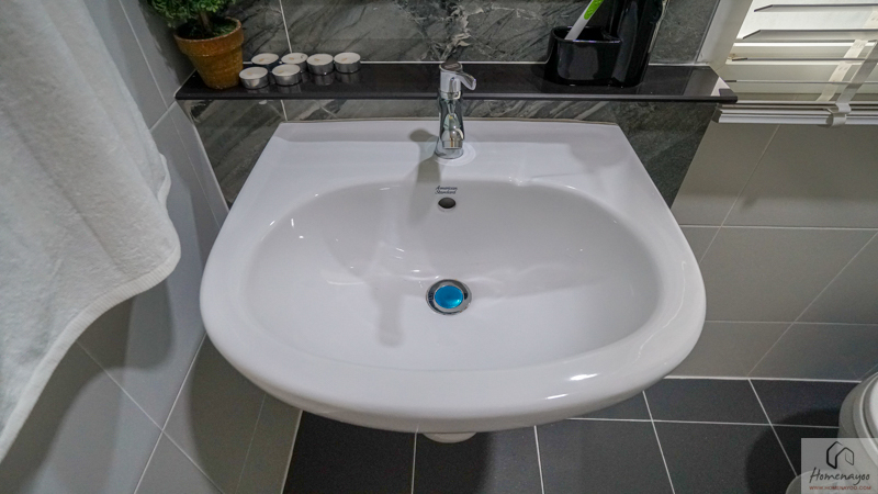 ในห้องน้ำจะมีการแบ่งส่วนแห้งและส่วนอาบน้ำออกจากกัน มีระเบียงส่วนตัวทางฝั่งหน้าบ้านและได้ชุดสุขภัณฑ์มาตรฐานของ American Standard ทั้งหมด