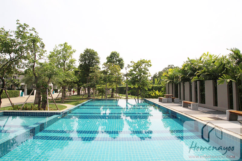 สระว่ายน้ำมองตรงไปจะเป็นวิวสวนสาธารณะของโครงการแบบนี้
