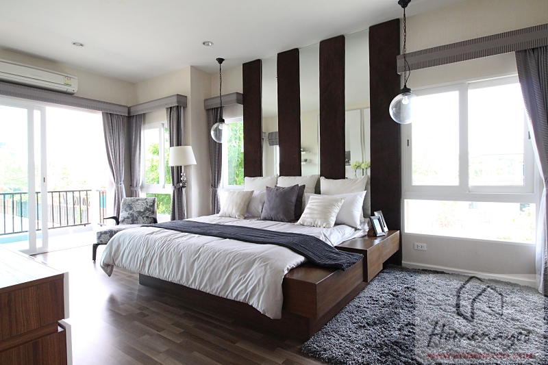 ภายในห้องนอนใหญ่จะมีห้องน้ำ และ Walk in closet ในตัวนะคะ ในห้องสามารถวางเตียง 6 ฟุตหรือคิงไซส์ได้สบายๆแบบนี้ หน้าต่างข้างเตียงและฝั่งหัวเตียงเป็นหน้าต่างบานใหญ่ ใช้เปิดรับลมและแสงธรรมชาติเข้าห้องได้ดี