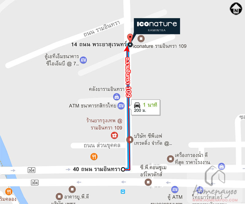 เข้าซ.รามอินทรา 109 แล้วตรงมาประมาณ 200 เมตร จะเจอโครงการ Iconature รามอินทรา อยู่ทางขวามือ ไปดูภาพการเดินทางกันต่อเลยค่ะ