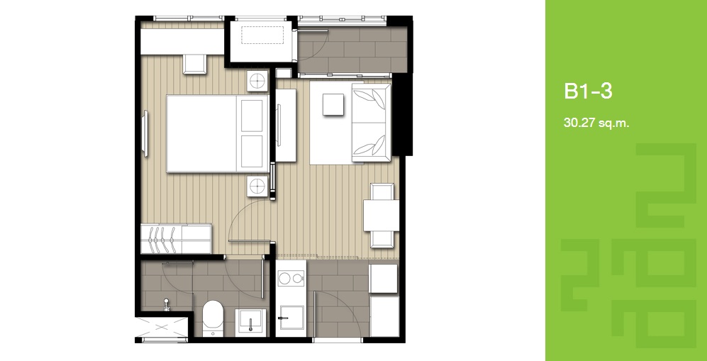 | ลักษณะห้องและขนาดห้อง | – Studio : 21.00 ตร.ม. – 1 Bed : 30.00 ตร.ม. – 2 Bed : 45.00-56.00 ตร.ม. – Duplex 1 Bed : 43.00 ตร.ม. – Duplex 2 Bed : 60.00 ตร.ม. |