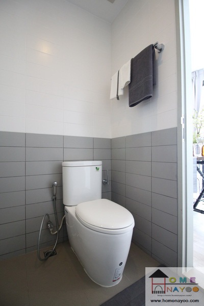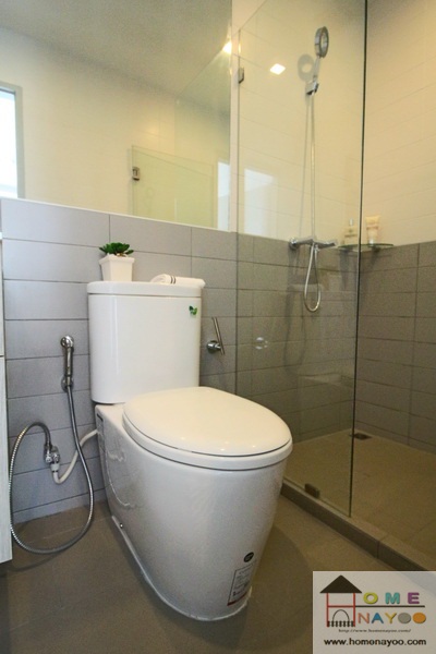 สุขภัณฑ์เหมือนกันกับห้องน้ำด้านล่างค่ะ ที่ผนังติดตั้งกระจกส่องหน้าบานใหญ่ให้ด้วย