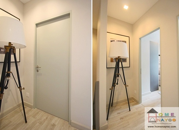 ทางเข้า Master Bedroom ได้เป็นประตูไม้สีเทา มือจับก้านโยก เหมือนกันทุกห้องค่ะ