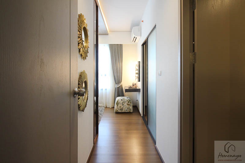 ห้องของทางโครงการตกแต่งให้แบบ Fully Fitted พร้อม Furniture Package ได้ชุดครัวพร้อม Sink และ Hob&Hood, ชุดตู้เสื้อผ้า Built – in ขนาดใหญ่, สุขภัณฑ์ภายในห้องน้ำ และแอร์แบบ Wall Type 3 ตัว