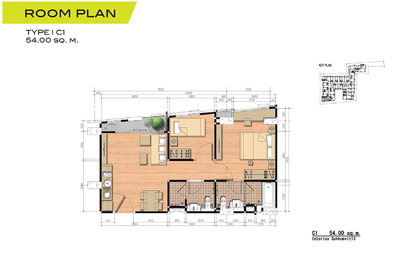 ห้องตัวอย่างแบบที่ 2 เป็นห้อง Type C2 แบบ 2 ห้องนอน 2 ห้องน้ำ ขนาด 54.00 ตร.ม. ภายในห้องส่วนแรกจะเจอห้องครัวและห้องทานอาหาร เป็นพื้นที่เปิดโล่งเชื่อมต่อไปยังห้องนั่งเล่นและมุมทำงาน และจากห้องนั่งเล่นจะเชื่อมต่อกับระเบียงภายนอก