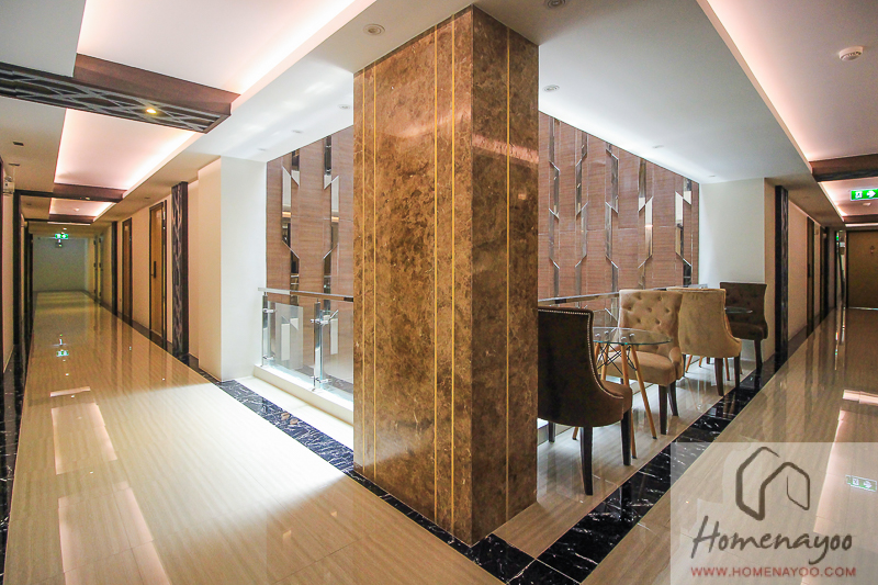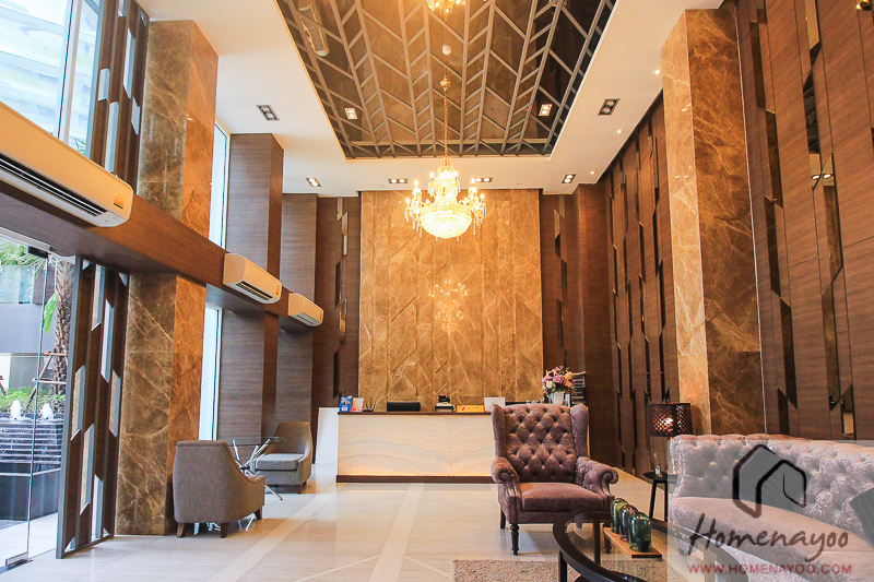 ส่วนภายในตัวอาคารจะต้องผ่าน Lobby หลัก เป็นโถงฝ้าเพดานสูง เป็นพื้นที่ให้แขกมานั่งพักรอได้ จากส่วน Lobby จะต้องใช้ Key Card Access ผ่าน เข้าไปในโถงลิฟท์ซึ่งจะรวมอยู่กับห้อง Mail Room และเชื่อมต่อไปยังโถงทางเดินของส่วนพักอาศัย