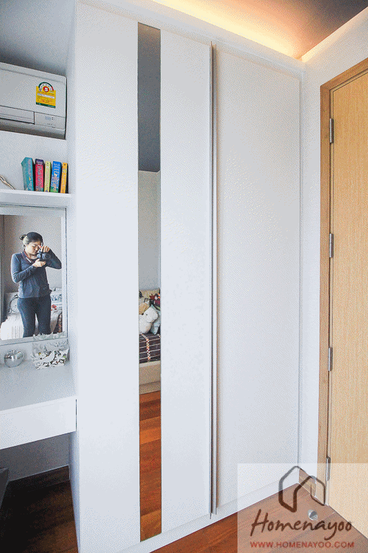 ข้างตู้ติดกับประตูห้องน้ำก็มีกระจกเงาบานยาวติดตั้งมาให้เช็คความเรียบร้อยก่อนออกจากห้องด้วย