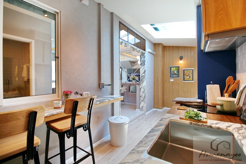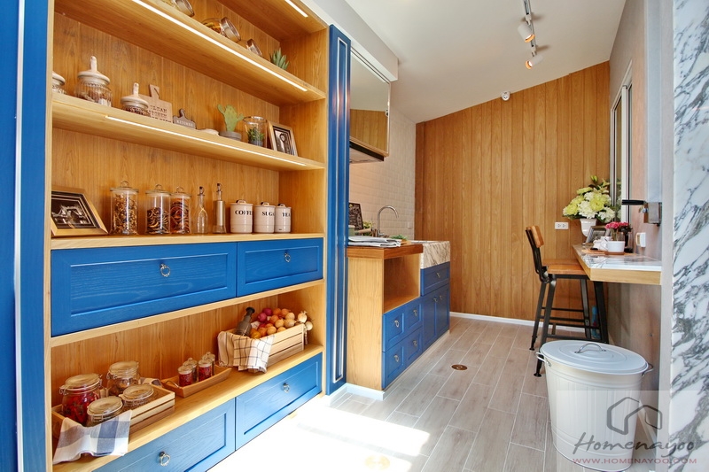 จากภาพเห็นได้ชัดว่าการตกแต่งของโครงการไม่ได้ใช้พื้นที่ส่วนนี้เป็นลานซักล้าง แต่จะใช้เป็นห้องครัวสำหรับประกอบอาหาร