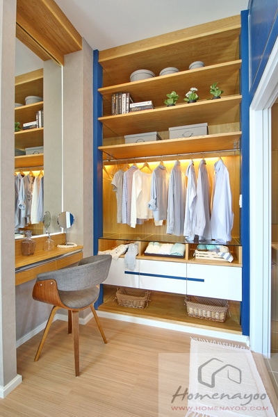 บิลท์อินตู้เสื้อผ้าทรงสูง และโต๊ะเครื่องแป้ง