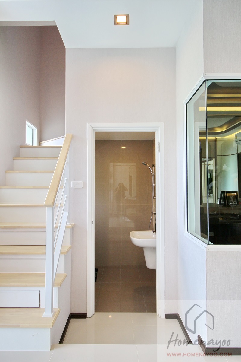 ที่ข้างโถงบันได และ ชานพักบันไดจะมีหน้าต่างช่องแสงจากโรงรถให้ 2 บาน เปิดรับแสงธรรมชาติเข้าสู่โถงบันได ช่วยให้บ้านไม่มืด อับ ทึบ สะดวกในการเดินขึ้น-ลง แถมยังช่วยประหยัดไฟฟ้าในช่วงเวลากลางวันได้อีกด้วยค่ะ