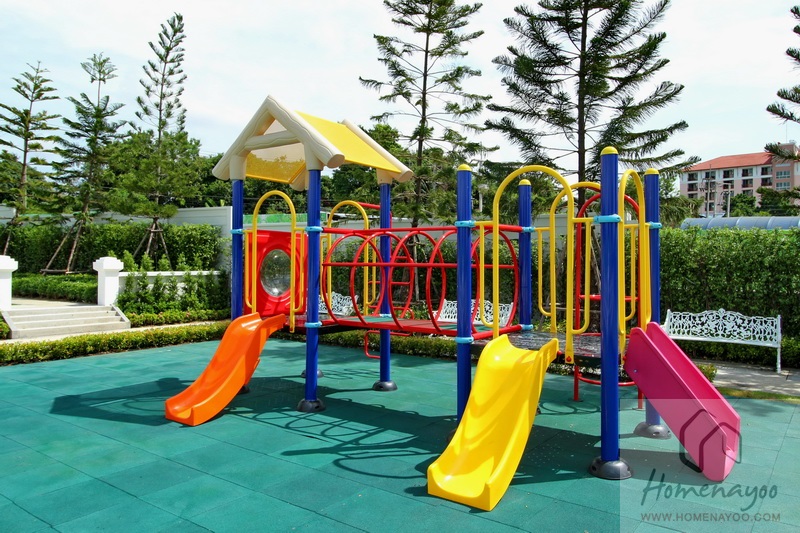 มีเครื่องเล่นสนามชุดใหญ่ให้ 1 ชุด พื้นสนามเด็กเล่นเป็นแผ่นโฟมกันกระแทก ช่วยลดการบาดเจ็บเวลาเด็กหกล้ม