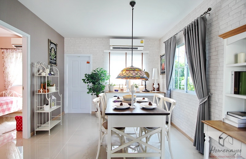 ติดกันนั้นเป็นโต๊ะทานอาหาร ด้านซ้ายมือจะเป็นห้องน้ำและห้องนอน 4 ครัวเป็นครัวเปิดอยู่ติดกับประตูหลังบ้าน ด้านขวาจะมีหน้าต่างกระจกทำให้ส่วนนี้สว่างค่ะ และด้านหลังบ้านก็ยังมีหน้าต่างกระจก ทำให้บ้านสว่างและถ่ายเทอากาศได้ดี