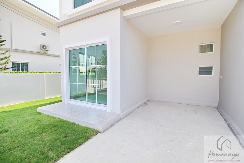 พื้นที่หลังบ้านเป็นคอนกรีตฉาบเรียบ สามารถต่อเติมพื้นที่ด้านหลังเป็นครัวและมุมซักล้างได้