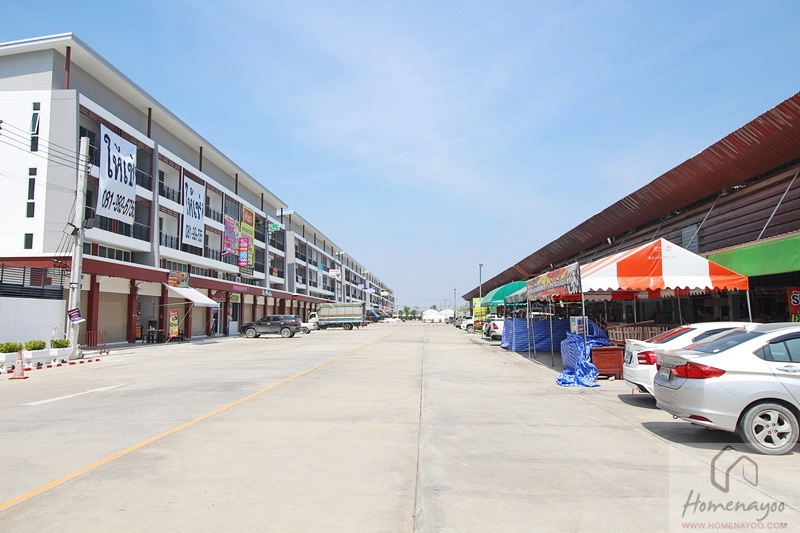 พื้นที่ด้านข้างตลาดจะขนาบด้วยอาคารพาณิชย์