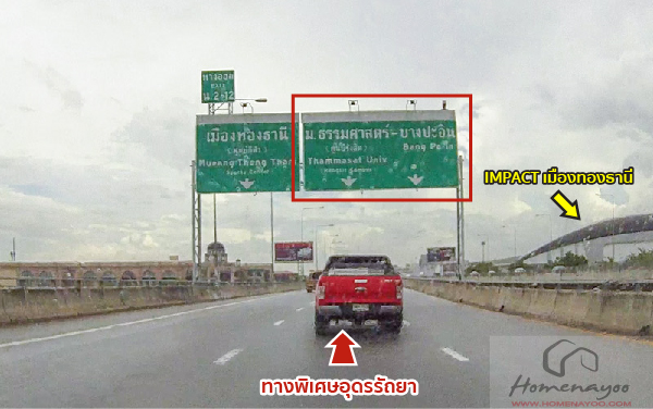 ขับมาสักพักก็จะเจอศูนย์ IMPACT เมืองทองธานี อยู่ขวามือ ขับตรงไปยาวๆอีกประมาณ 9 กม. ค่ะ จะเจอทางออก ถ.บางพูน-รังสิต