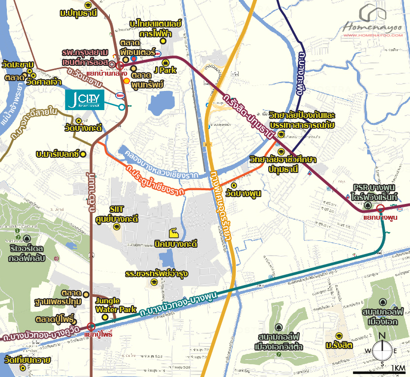 อีกอย่างนึงคือ โครงการอยู่กึ่งกลางระหว่างสะพานปทุมธานี และ สะพานปทุมธานี 2 พอดีเลยค่ะ ซึ่งหากใช้สะพานปทุมธานี2 ก็จะวิ่งสู่บางบัวทองได้ใกล้ที่สุด ส่วนสะพานปทุมธานี จะเป็นเส้นทางหลักที่ใช้วิ่งสู่ อ.บ้านฉาง-ศาลากลางจังหวัดปทุมธานี และ อ.คูบางหลวงไปออก ถ.กาญจนาภิเษกได้อีกที