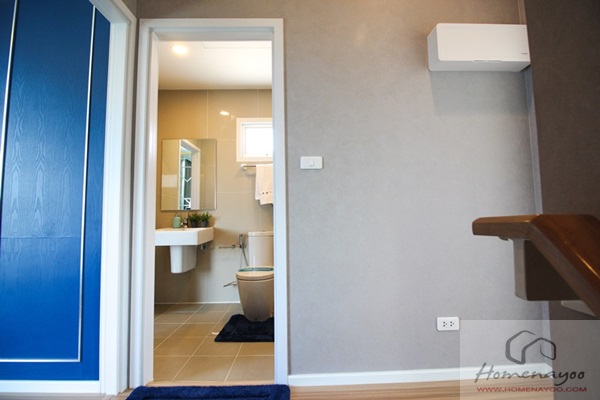แต่ห้องน้ำชั้นบนจะไม่มีหน้าต่างระบายอากาศมาให้ ทางโครงการจึงติดพัดลมดูดอากาศมาช่วยเรียบร้อยค่ะ