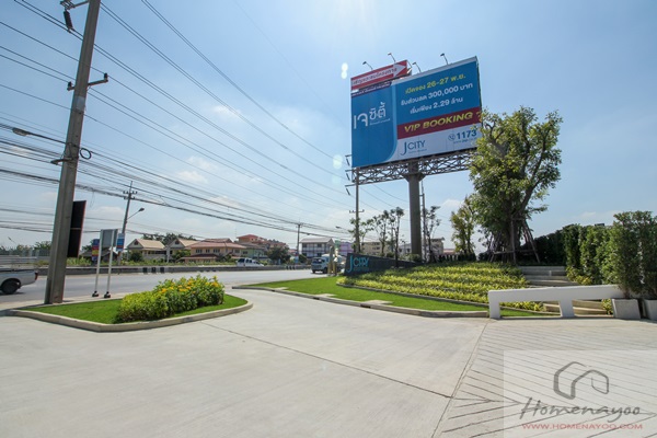 เมื่อเลยสะพานลอยมาก็จะเจอกับโครงการ J city ด้านขวามือ